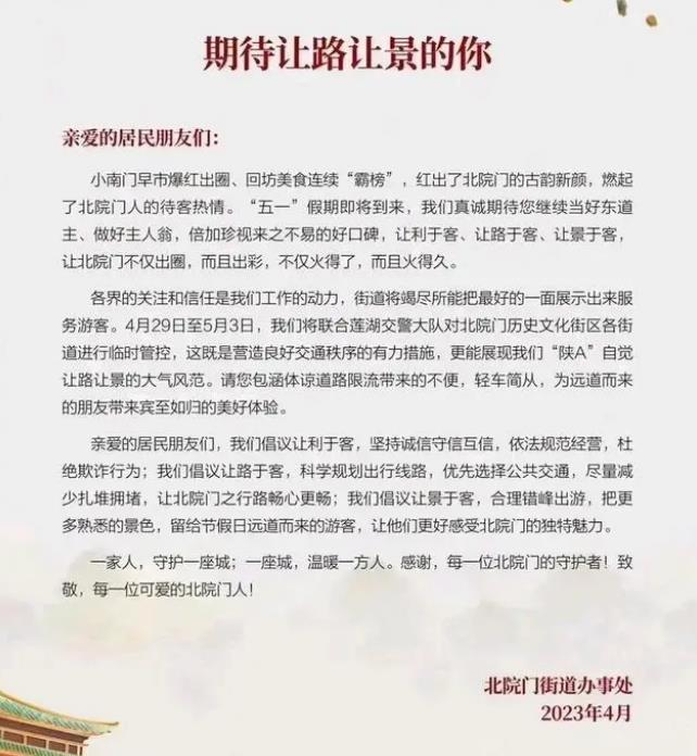 ·西安一街道辦回應“建議五一時代陜A讓路讓景”:想讓外埠游客有更好體驗,并非強迫播報文章。
